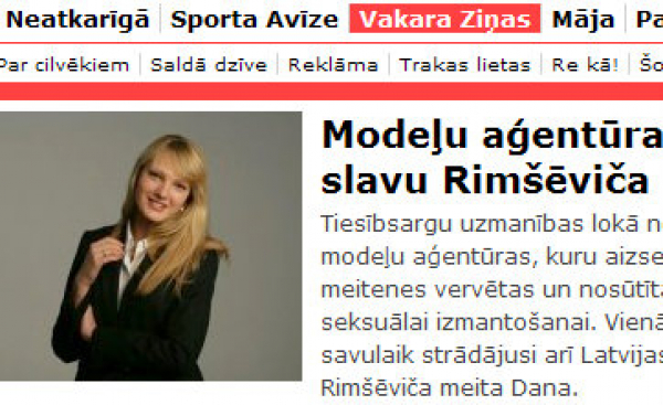Несовершеннолетняя дочь президента Банка Латвии Дана Римшевича работала в модельном агентстве www.management, которое полиция подозревает в сутенерстве и торговле живым товаром – агентство поставляло несовершеннолетних девушек итальянским потребителям.