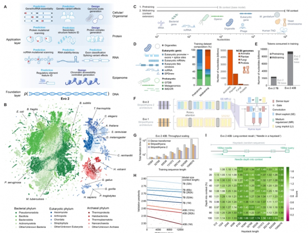 Что делает Evo-2 столь значимой? Это первая в своём роде универсальная биологическая языковая модель, которая способна анализировать, предсказывать и проектировать ДНК, РНК и белковые последовательности всех форм жизни — от простейших бактерий до человека. В отличие от предшествующих ИИ-инструментов, таких как AlphaFold, сосредоточенных на предсказании структуры белков, Evo-2 охватывает весь спектр биологических молекул и позволяет проектировать новые геномные последовательности с высокой точностью.
