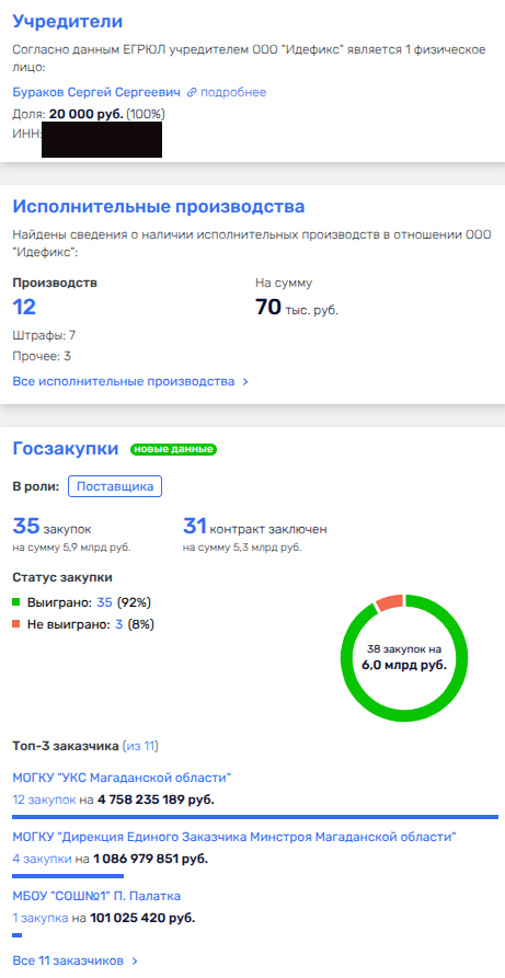 У фирмы ранее было госконтрактов на 5,3 миллиарда рублей, из которых 4,7 млрд обеспечило управление капстроительства Магаданской области. Госзаказчиков даже не смущает анамнез фирмы-подрядчика. В частности, заигрывание со сроками реализации контрактов. По одному из таковых, фирма требует поменять сроки через суд.
