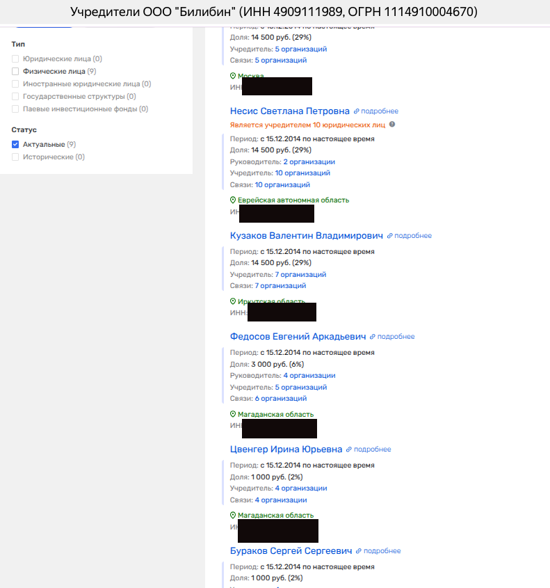 Более того, тот же Кузаков является совладельцем некоего учрежденного в 2021 году ООО «Горнорудная компания Территория», которое приобретает некоторые бывшие активы Полиметалла. В числе партнёров Кузакова по ООО - созданное в сентябре 2025 года мутное АО «ВИР БОНУС КАПИТАЛ», которое с самого старта скрывает бенефициаров.