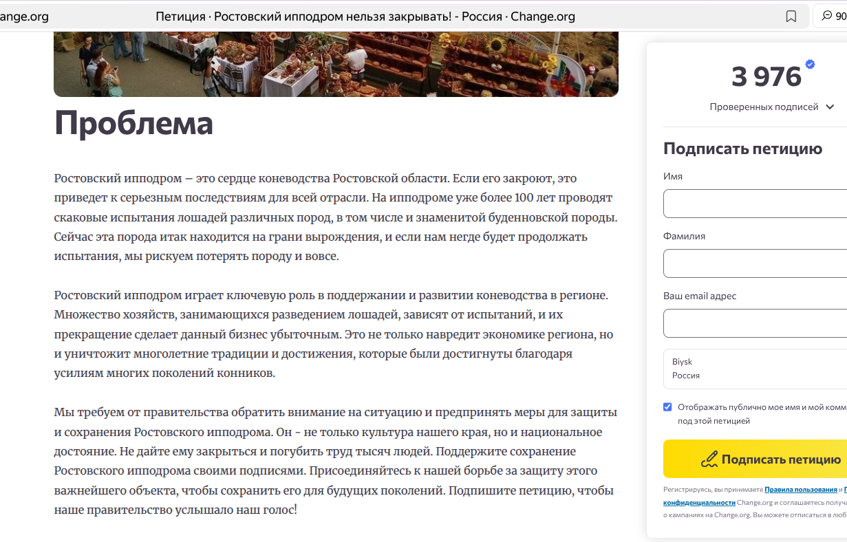 Под петицией в защиту ипподрома уже оставлено более 3,9 тыс. подписей. ОБ ЭТОМ СООБЩАЕТ КАТАРСИС