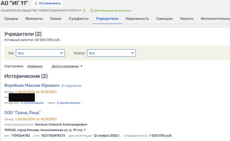 Еще 23 октября 2025 года Воробьев назначил директором своего ООО «Амереус Рус» некую Ксению Турчанинову - давнего и проверенного персонажа, который верой и правдой руководил воробьевским АО «ИГ 11» с 2019 по февраль 2025 года. А именно через АО «ИГ 11» Воробьев и мать братьев Людмила Воробьева (через ООО «Гранд Лэнд») могут контролировать свои доли в ГК Самолет.