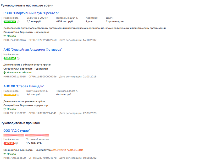 Кстати, Спицин в АНО «ХК Старая Площадь» как раз 5 декабря 2025 года сменил на посту главы Сергея Пилюгина, связанного как раз таки с Ночной хоккейной лигой.