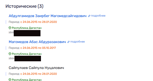 Хотя при этом среди владельцев были известные для региона фамилии. Например, Сайпулаев Сайпула Нуцалович, однофамилец с новым министром экономики и территориального развития Дагестана, выходца из прокурорских кругов Маратом Сайпулаевым.