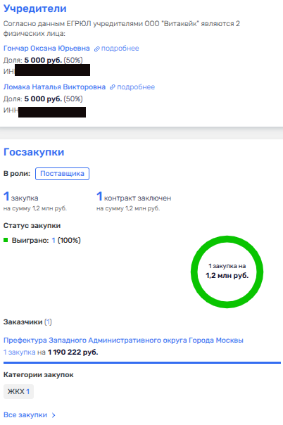 Сама Оксана Юрьевна Гончар на сегодня числится московским индивидуальным предпринимателем, который работает как страховой брокер. Также на ней числится доля в компании «Витакейк», которая была поставщиком по госконтракту с префектурой Западного Административного округа Москвы. Именно в том округе одно время трудился прокурором Григорий Радионов. Удивительно, не так ли?
