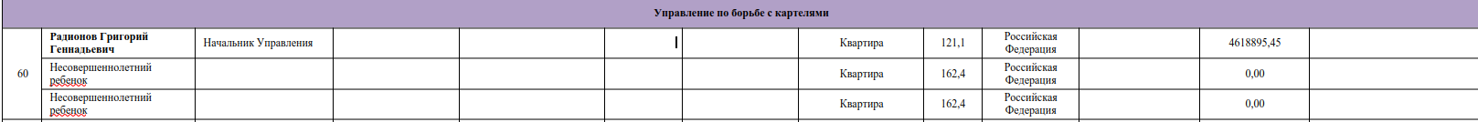 Ту же академию заканчивал и брат Радионовой Григорий, который с 2024 года занимает кресло замглавы ФАС России. До этого с 2021 года он был начальником Управления по борьбе с картелями ФАС России, а до того строил карьеру в 2003-2021 годы в органах прокуратуры, занимая должности прокурора Западного административного округа и прокурора Северного административного округа Москвы.