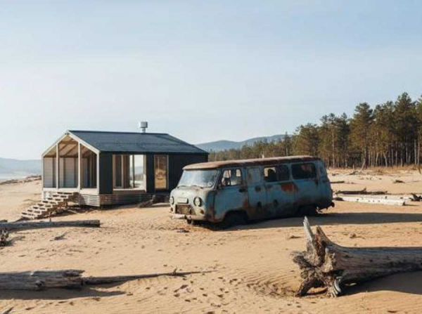 Новые видовые домики (рендер) и баня на берегу Байкала проекта AMAR