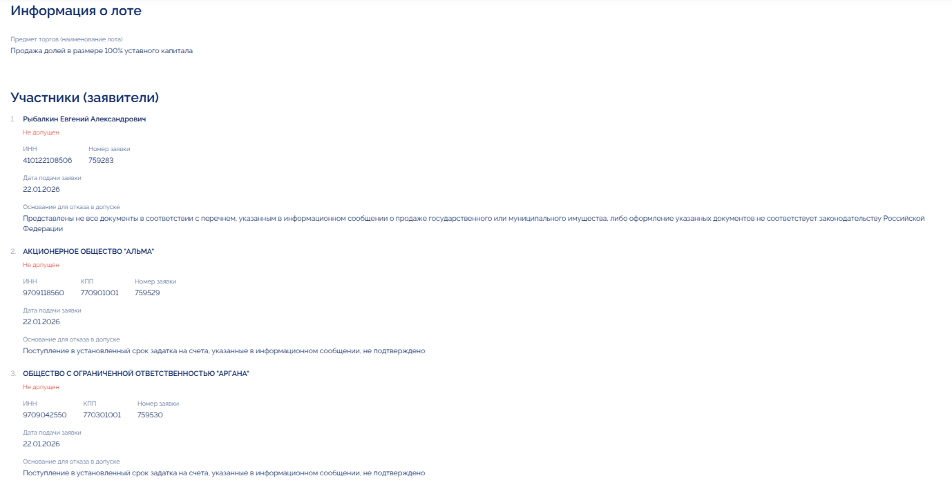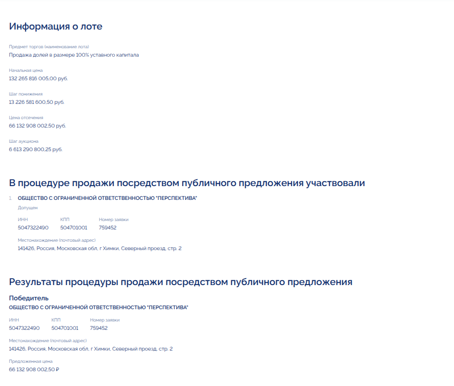 29 января 2026 года Росимущество провело повторные торги по продаже 100% долей компании «ДМЕ Холдинг», которая владеет активами аэропорта Домодедово и связанными с ним фирмами. На втором кругу актив ушел с огромным дисконтом: при начальных 132,265 млрд рублей его слили за 66,13 млрд рублей. При этом до участия в торгах из четырёх заявителей допустили лишь одного участника, созданного буквально за 1.5 месяца до торгов, но из-за спины которого торчат уши олигарха Ротенберга и Ко.