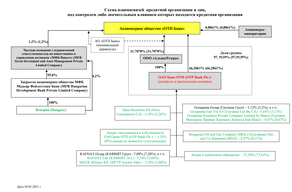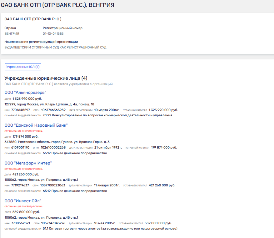 Как минимум на 2021 год, «ОТП Банк» связей с венгерской фирмой не утратил. Более того, банк принадлежал венгерской фирме OTP Bank Plc на 66,2% и именно она снимала с него сливочки.
