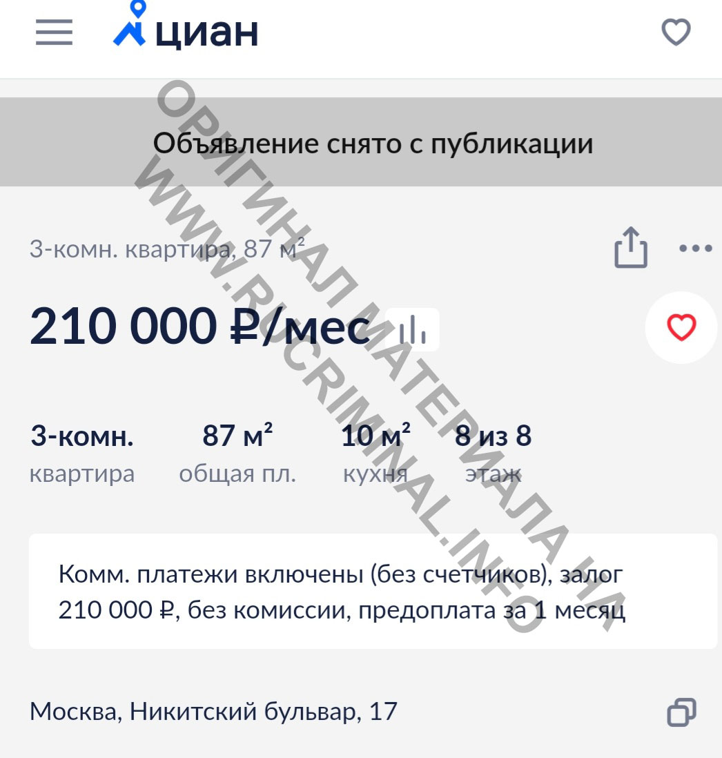 В это же время я узнаю, через сайт ЦИАН, что Матвеевская пытается сдать одну из квартир за 210 тысяч рублей в месяц.